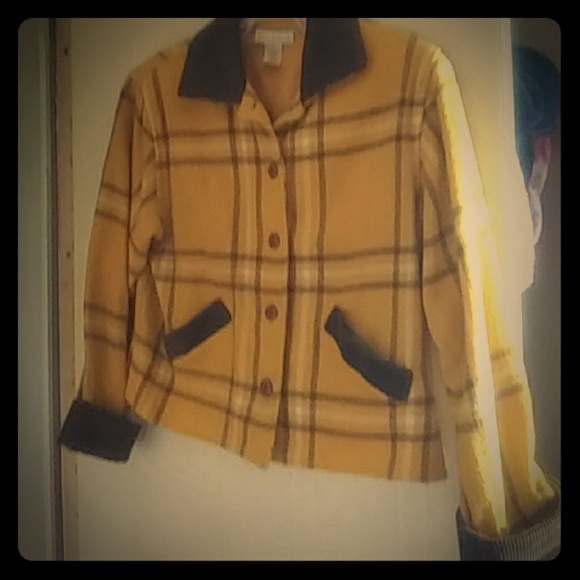 Dress wool w/brown corduroy cuffs, lapels & faux pockets.Short jacket.