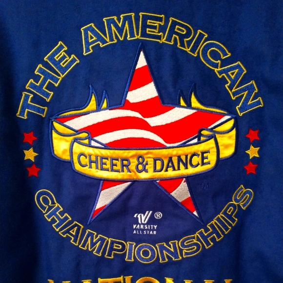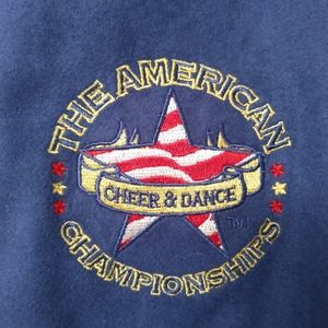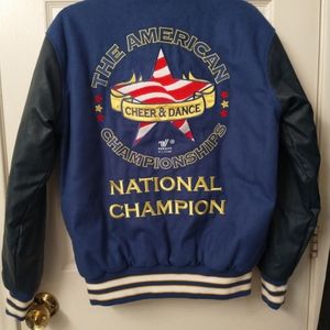 Blue wool jacket size small fits like medium. Dance and Cheer world champion jacket.