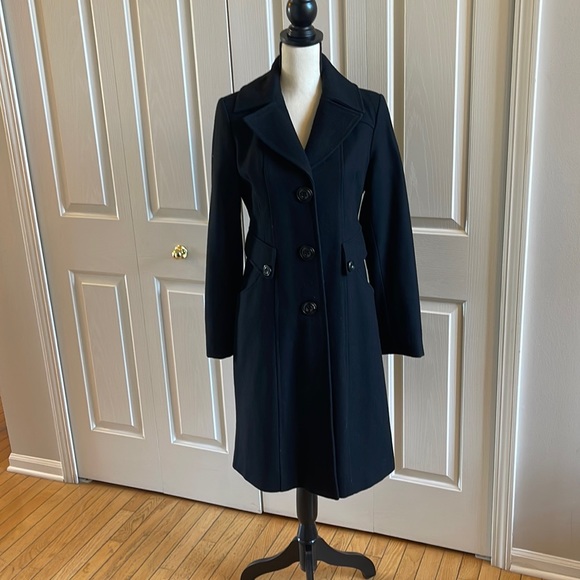 Black wool jacket. Fitted with packets.