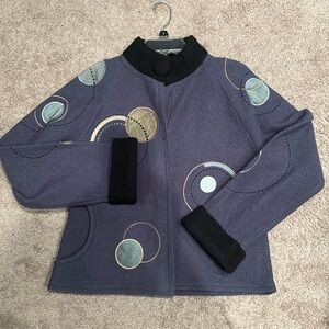 CoVelo brand jacket in dark gray with black cuffs and stand up collar