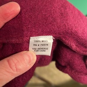 Perfectly fit and no defects except a button needs to be reinforced. So warm and well fitting in a deep, flattering mauve. 100% wool