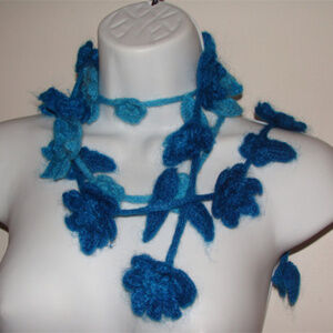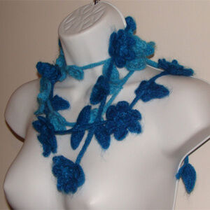 Wool knit whimsy statement extra long neck wrap scarf gradient flowers.