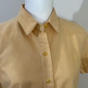 Cute summer button shirt. I wore it open with a sports bra and jean shorts. Excellent quality fabric. Has a lightweight fabric.measurements are pit to pit flatfold about 28”. Total length about 25”. No visible flaws. Any questions please ask and we will answer questions ASAP. R 3