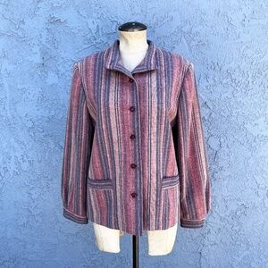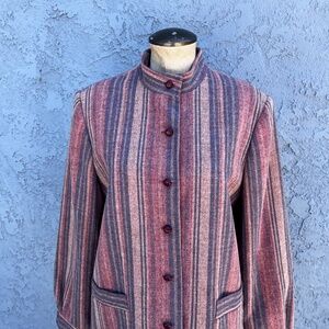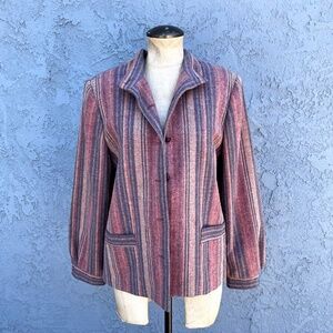 Vintage 80s wool striped blazer jacket. Purple and pink hues. Union made.
