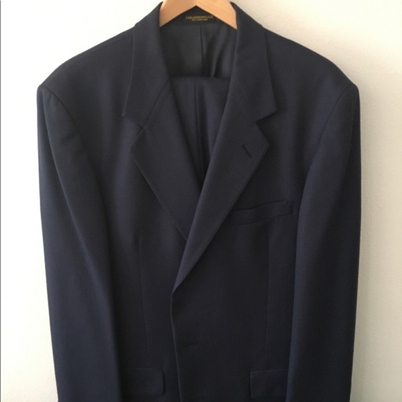 Custom made wool suit. Could be tailored for approximately 42-44 coat size and 32-34” waist.