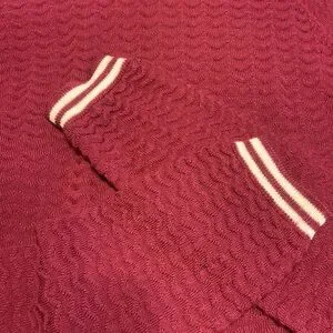 Beautiful knit magenta color with white around wrists and waist, hooded sweater. Lightweight but super warm, I have two and don’t need both. New with tags, offers considered. Renewable wool (100%) but not itchy! Size small, smoke and pet free home.