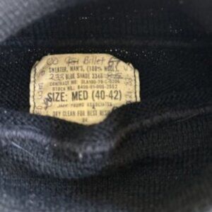 Vintage wool sweater worn by sailors.... this sweater is probably 40 years old but still has tight weave and is without holes or rips. It has been stored in a cedar chest and recently cleaned. Dark navy color. These types of wool sweaters provided lots of protection from the damp cold.
