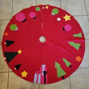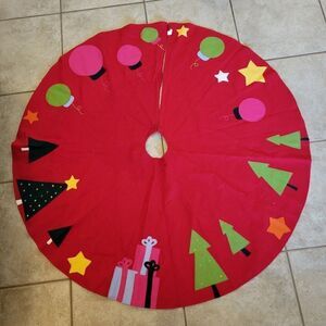 Lovely Wool Christmas Tree Skirt with Applied Traditional Christmas Decorations