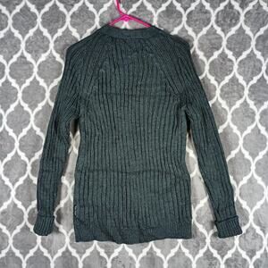 WoolOvers Cardigan Sweater Womens Small Green 100% Wool Cable Knit Pockets