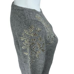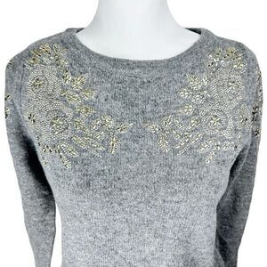 WoolOvers Lambswool Crewneck Sweater Gray Embellished Pullover Women's Size XS in Very good pre-owned condition, no holes, stains, fading, or piling.