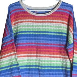 WoolOvers Organic Cotton Bright Stripe Multicolor Jumper Sweater Size XL NWT