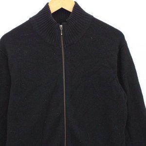 WoolOvers Sweater Mens Black Casual Full Zip Long Sleeve Wool Size Small S