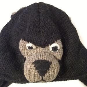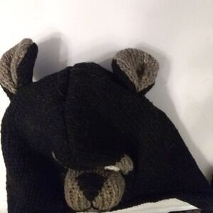 Black, wool and fleece lined hat. Bear face and eats. Has ear flaps. Adult sized unisex