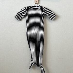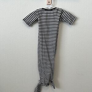 Baby knot gown made with 100% organic cotton. Sized for 0-3 months but it’s very long and could fit longer. Black and white striped, no stains or tears. Retail $54 from California boutique.