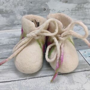 Wool felt Slippers Wearable Art Flowers Handmade in Nepal New w/ Tags Baby Sz 5