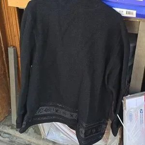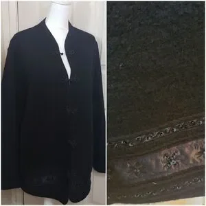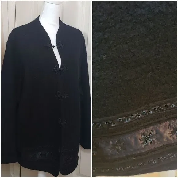 Pre-owned excellent condition black wool, Chinese closures, beaded satin hem