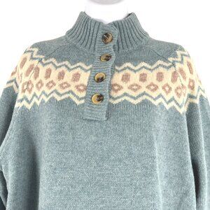 Woolovers Button Neck Nordic Fair Isle Sweater Womens Medium Lambswool FS-1397