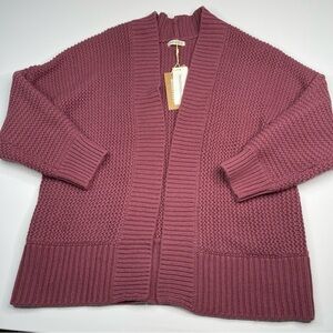 Woolovers Cardigan Sweater Chunky Edge to Edge Henna Mauve Fisherman Boho Bohemian Comfy Cozy Fall Winter L/XL Cotton Wool Viscose