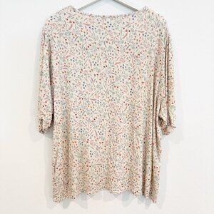 Woolovers Floral Pleated Detail Sleeve Crew Neck Top Boho Plus Size Peasant Casual Bohemian Cream Office Sustainable