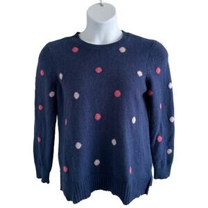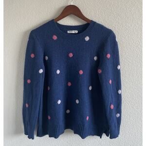 Woolovers Sweater 100% Lambswool Navy Pink Polka Dot Pullover Cozy