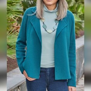 Woolovers Wool Cotton Lapel Open Front Pocket Knit Cardagan Jacket NWOT
