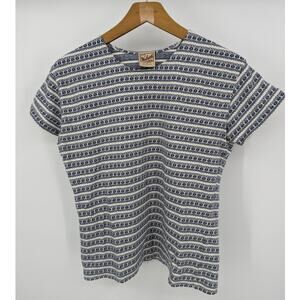 Woolrich 100% Cotton Fair Isle Stripe T-Shirt Blue White Vintage Medium