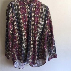 Made in USA . Button down long sleeve shirt. Burgundy, navy, olive, and mauve. Size XL Men's Aztec pattern