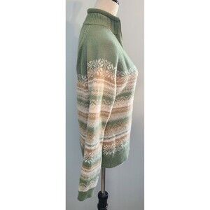 Woolrich 100% Lambs Wool Fair Isle Snowflake Nordic 1/4 Zip Sweater Sage Green S
