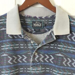 Woolrich 80's Vintage Funky Aztec Printed Short Sleeve Henley Polo Shirt