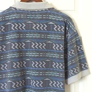 VTG and straight out of the 80s - This classic polo features a henley neckline with three buttons, a collar, short sleeves, and a split hem. It is ribbed at the collar and cuffs. It has an all-over Aztec design that is different shades of blue, green, and purple. It has a casual, relaxed fit that is lightweight and comfortable! Perfect to pair with jeans and loafers for a preppy retro look! A different and fun, rare design! High quality!