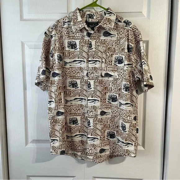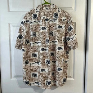 Woolrich 90's Men's Fishing Bass Graphic Button Short Sleeve Shirt Size Lg