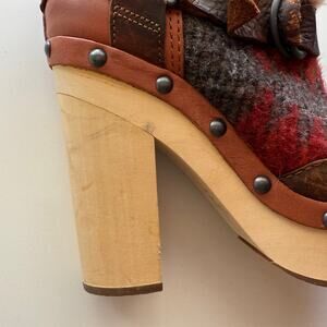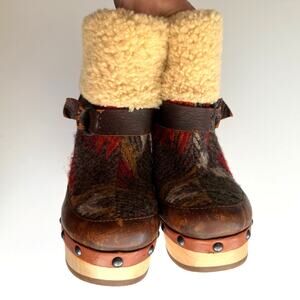 Woolrich Anthropologie Artist Wool and Shearling Wood Sole Heeled Boots sz 8