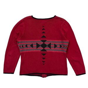 Woolrich Aztec Print Zip Up Cardigan Cotton Blend Ruby Red Small