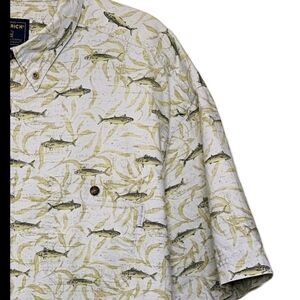 Woolrich Shirt Men's Wasabi Tuna Fish Print L Button Up Short Sleeve (NWT)