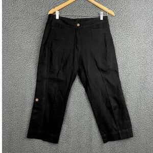 Woolrich Black Linen Cotton Capri Pants Sz 6 Style 1210 Casual Pockets Women's