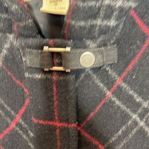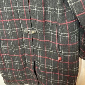 Woolrich Black Plaid Hooded Wool Pea Trench Coat. Size Medium.