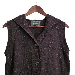 Woolrich Black Speckled Angora Blend Tulip Hem Hooded Sweater Vest Sz M