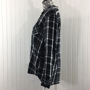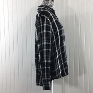 Woolrich Black White Plaid Button Front Shirt Womens Large Roll Tab Sleeve