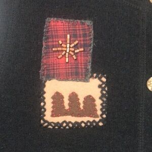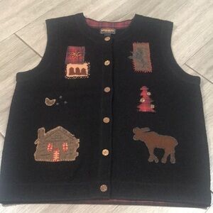 Woolrich Black Wool Embroidered Christmas Button Front Vest size L