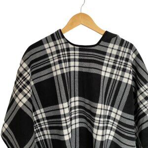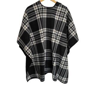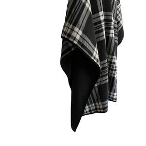 Woolrich Black and White Plaid Reversible Fleece Poncho Shawl