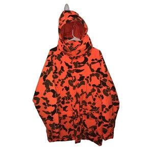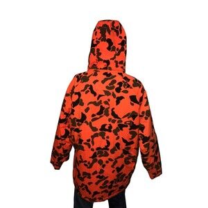Woolrich Blaze Orange Camo Hooded Hunting Jacket Vintage Made in USA Size Large