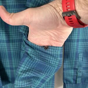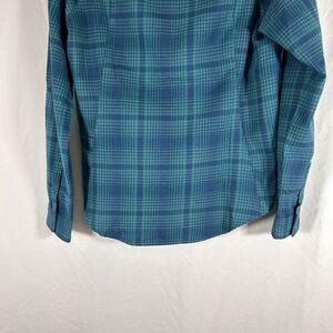 Woolrich Blouse Women's Small Blue Green Plaid Snap Up Long Sleeve Breathable