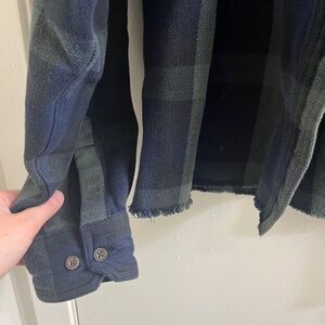 Woolrich Blue & Green Plaid Cropped Button Up Flannel