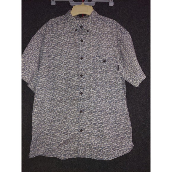 Woolrich Blue Hawaiian Palm Mini jeep Pattern Button Down Shirt SS Mens Size L