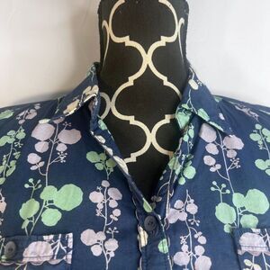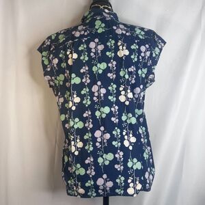 Woolrich Blue Printed Cap Sleeve Button Front 100% Cotton Blouse Size Medium
