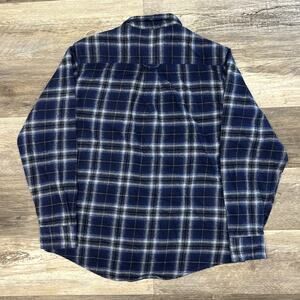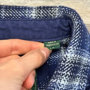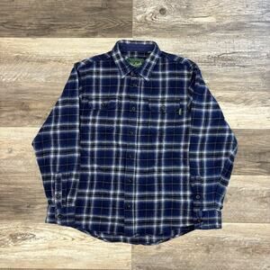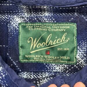 Woolrich Blue White Mens L Woven Button Up Tartan Plaid Shacket Flannel Shirt