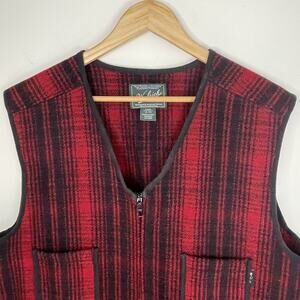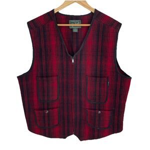 Woolrich Buffalo Plaid Wool Field Hunting Vest Back Buckle Rugged Men XL Red/Blk