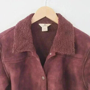 Woolrich Burgundy Button Up Pattern Fleece Jacket Women's L