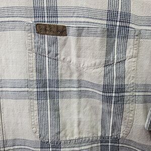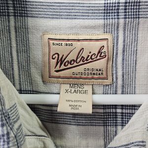 Woolrich Button Up Shirt Mens XL White Blue Plaid Outdoor Hunting Short Sleeve