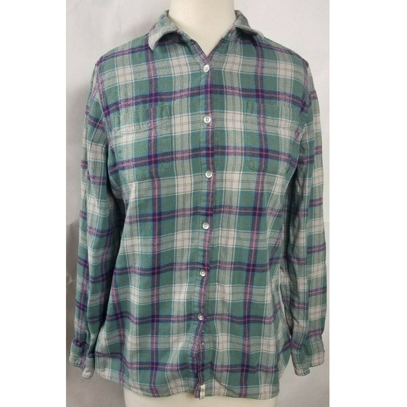 Woolrich Womens Button down Flannel Size Large Plaid Cotton Pockets long Sleeve. Condition is "Pre-owned".